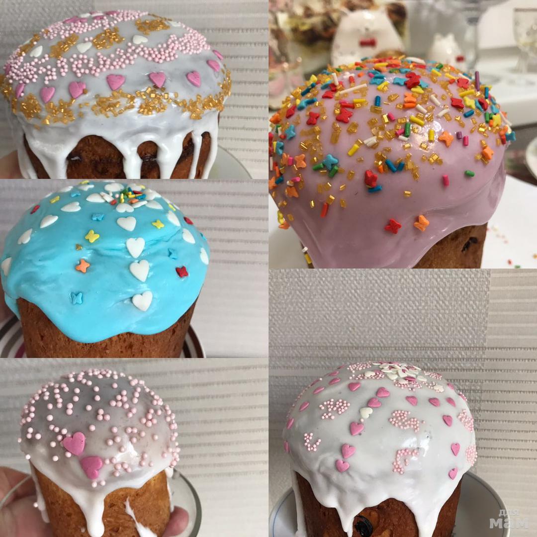 Украшаем остывшие куличики на свой вкус и цвет. я всегда украшаю сахарной помадкой.
