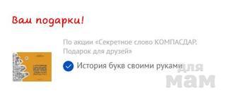 Секретное кодовое слово ЛабиринтКОМПАСДАР — в подарок при заказе книг изд.«КомпасГид» от 1000 руб. (с учётом скидок)в подарок книга С.Прудовской: История букв своими руками
