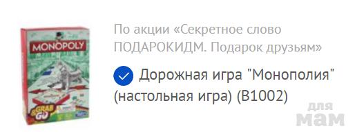 Замена подаркаПОДАРОКИДМ — покупке книг ИД Мещерякова на сумму от 1000 руб в подарок набор для лепки из пластилинаСейчас в подарок идет дорожная игра "Монополия" Активировать секретное слово