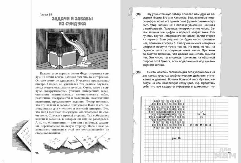 Федя окончил начальную школу и отправляется на каникулы к дедушке в деревню. Дедушка Гаврила Терентьевич, школьный учитель, берется приобщить внука к миру математики. Задачи появляются отовсюду: придумываются в бытовых ситуациях, сочиняются в разговорах и даже вынимаются из волшебного сундука! И до чего же интересные эти задачи! Парадоксальные, живые, веселые, творческие! Главное - не ответ, а решение и его метод! Дедушка учит самому главному: мышлению, логике, воображению, смекалке.