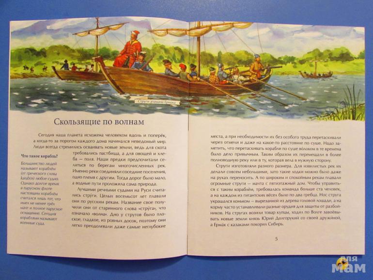 В «Парусах России» Михаил Пегов доступно и интересно рассказывает о самых первых русских кораблях. Книжку с интересом прочтет и ребенок и взрослый.