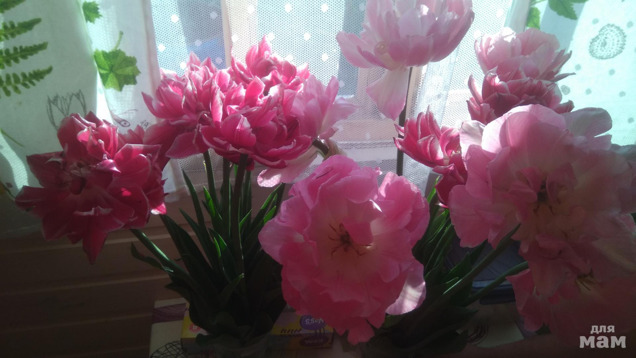 Размер гигантский, все соседи не понимали тюльпаны это или пионы