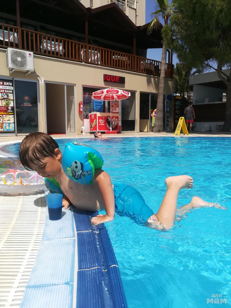 1) Территория : а ее почти и нет)) Сразу за отелем бассейн детский и взрослый, слева от бассейна бар и столики, справа снек-бар, столы, детская площадка. Проходите чуть дальше - терраса с лежаками . Еще дальше - пляж и пирс. Все. Мне хватало, ребенка видно из любой точки, пасти не надо.