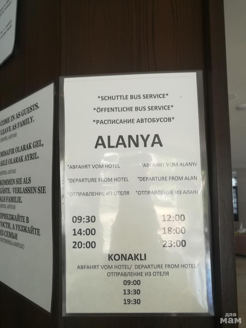 Расписание (в Аланью тоже можно прям от отеля уехать, об этом ниже):