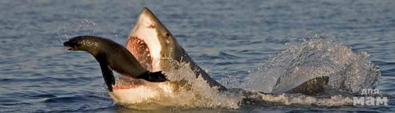 63. В последний момент атаки большая белая акула закрывает глаза, чтобы уберечь их от когтей котика.