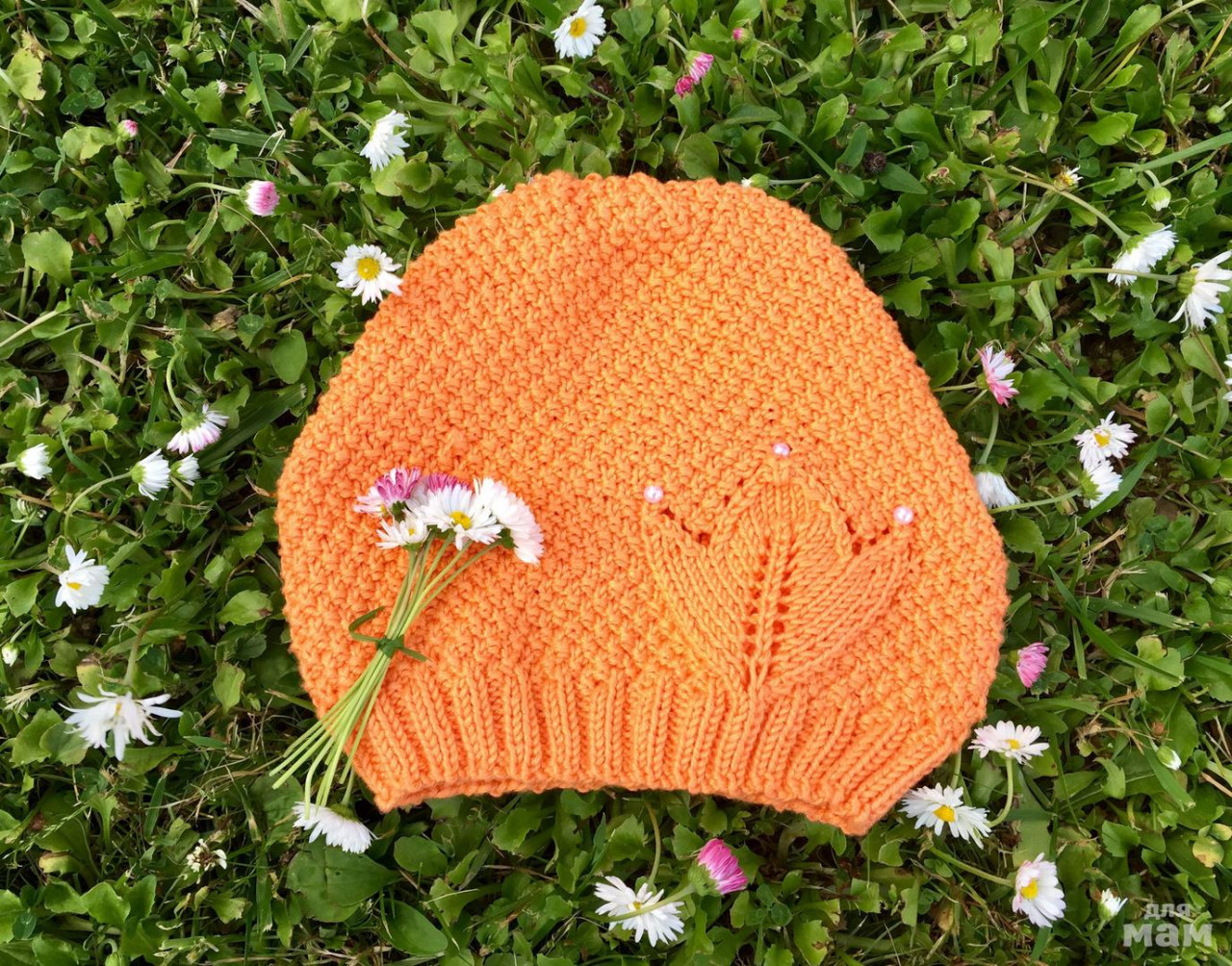 Тяжело передать точные оттенки пряжи, но «живьём» цвет шапочки одного оттенка с оранжевой пряжей кофты