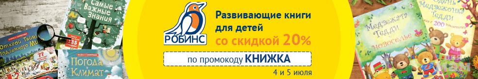 МАЙ-ШОПСкидка на книги издательства «Робинс»c 04.07.2018 00:00 до 05.07.2018 23:00дарим скидку 20% на книги издательства «Робинс»! Используйте промокод КНИЖКА при оформлении заказа.