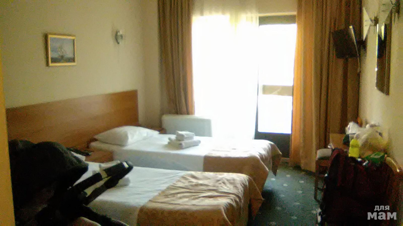Номер в отеле у нас был двухкомнатный, в каждой комнате - две односпальные кровати, 2 тумбочки, шкаф, телевизор, мини-холодильник, кондиционер, туалет с душем, балкон, на балконе стол, два стула и сушилка. Фен нам дали по первой просьбе)))) Утюг на этаже. Для младшей дочки дали кроватку-манеж. Все чисто, аккуратно, белоснежное белье и полотенца))))))). Где-то из отзывов читала - «Маленький туалет» - эт да, не большие)))) Но нам это не мешало, потому что в номере мы проводили ооооочень мало времени.