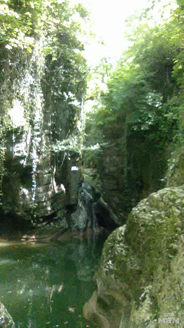 Наверно, очень интересное место, мы не заходили. А дальше идет тропинка на водопад. Кстати, вход туда - 100 руб/чел.( это место относится к Сочинскому национальному парку). Многодетные - бесплатно, надо всего лишь номер удостоверения (показывать не обязательно, верят на слово))) Бесплатно также всем льготным категориям. У кассы можно оставить коляску и дальше идти пешком. До первого водопада совсем недалеко, минут 15 и Вы - у первого водопада и «Чертовой купели». Мы до него дошли с коляской, а дальше, до других достопримечательностей, надо идти без коляски. Дальше мы не ходили. Обязательно схожу в другой раз! Посмотрите в интернете про Агурские водопады… И сходите! Это стоит того, чтобы увидеть!