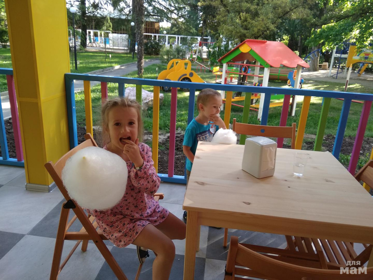 Возле столовой стоит девушка Аня (если не ошибаюсь), она занимается фотосессиями. В середине отдыха случилась у меня неприятность))) Еще дома, я решила не брать с собой в поездку фотоаппарат, а перед отъездом купила новую флэшку в телефон. И вот через три дня она меня и подвела)))) Перестала видеть фото и видео… Вот тут-то Аня мне и пригодилась))))) Условия фотосессии - гуляете час с фотографом, а потом выбираете понравившиеся вам (обработанные), 140 руб/фото. Вроде очень даже ничего цены)))) И вот, спасибо Анне большое, она сделала нам наше первое удачное семейное фото))))