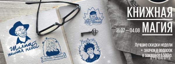 Книжная магияСкидка на книжный каталог 15%+ значок на выбор к заказу от 1500 рЗначки на выбор:Значок Нил ГейманЗначок РоулингЗначок МартинЗначок Терри Пратчеттпо 04.08.2018