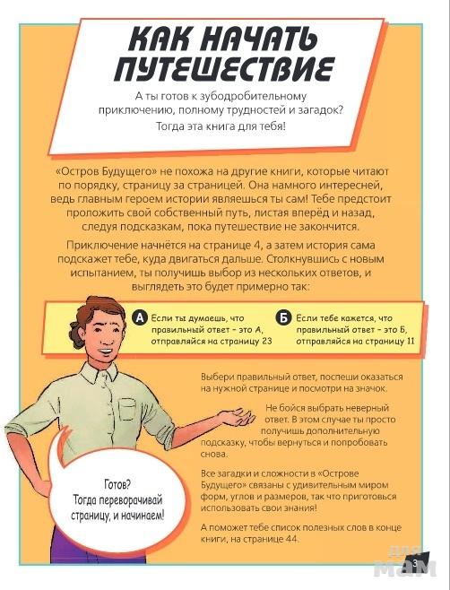 Почувствуй себя отважным искателем сокровищ вместе с книгой «Остров Будущего», ведь именно ты будешь главным героем этой истории. Тебя ждут увлекательные математические задачи и головоломки, от решения которых зависит дальнейшая судьба всего путешествия. Листай страницы вперёд и назад, принимай решения, ищи сокровища! Пройди книгу-квест до самого конца!