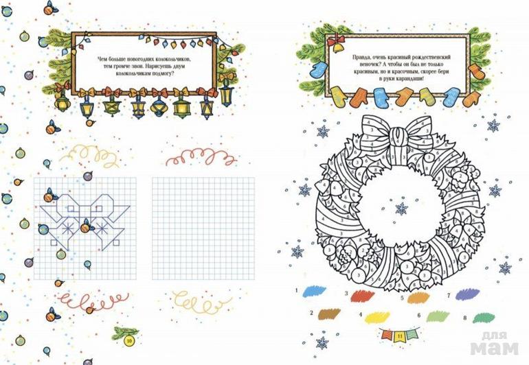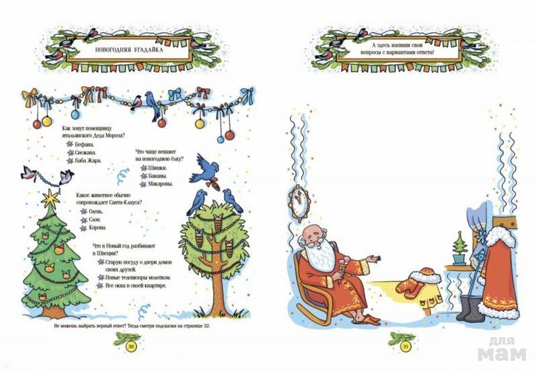 А чтобы для вас, дорогие дети и уважаемые родители, предновогоднее время пролетело ещё быстрее, мы сделали эту волшебную книгу. И приготовили для вас множество весёлых заданий: рисуйте и раскрашивайте, разгадывайте ребусы и узнавайте интересные факты о новогодних традициях разных стран, мастерите ёлочные игрушки и готовьте угощения по самым праздничным рецептам.
