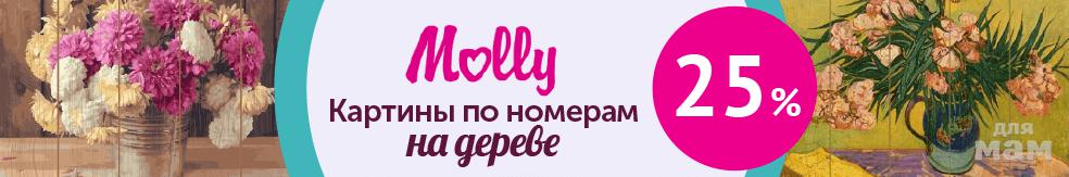 на картины для раскрашивания по номерам на дереве торговой марки Molly действует скидка 25%!
