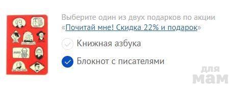 Сегодня в Лабиринте заканчивается акция "Почитай мне" — скидка 22% на книги 11 издательств, и подарок на выбор — блокнот "Портреты писателей" или Книжная азбука", к заказу от 700рублей.