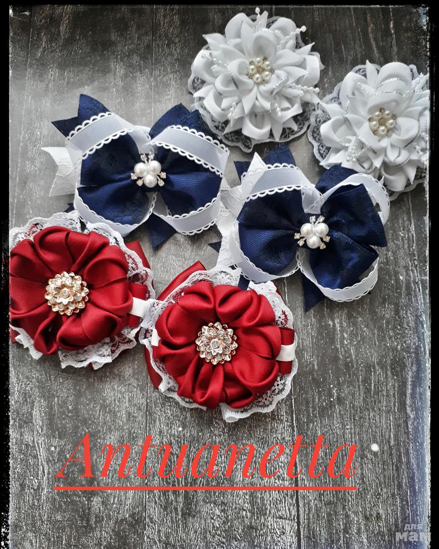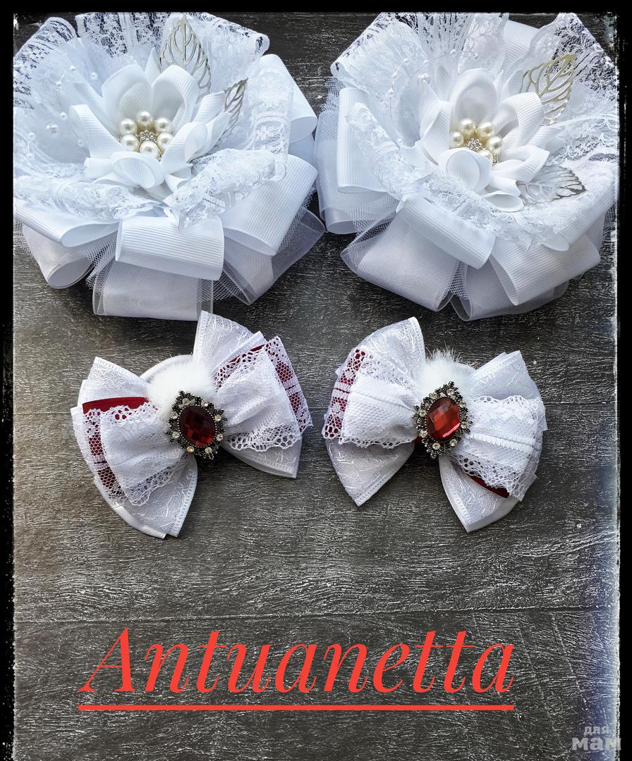2.Белые банты диаметр около 10 см,серединка расшита чешским бисером,возможны различные расцветки.