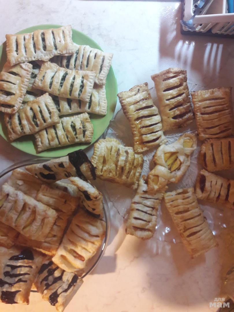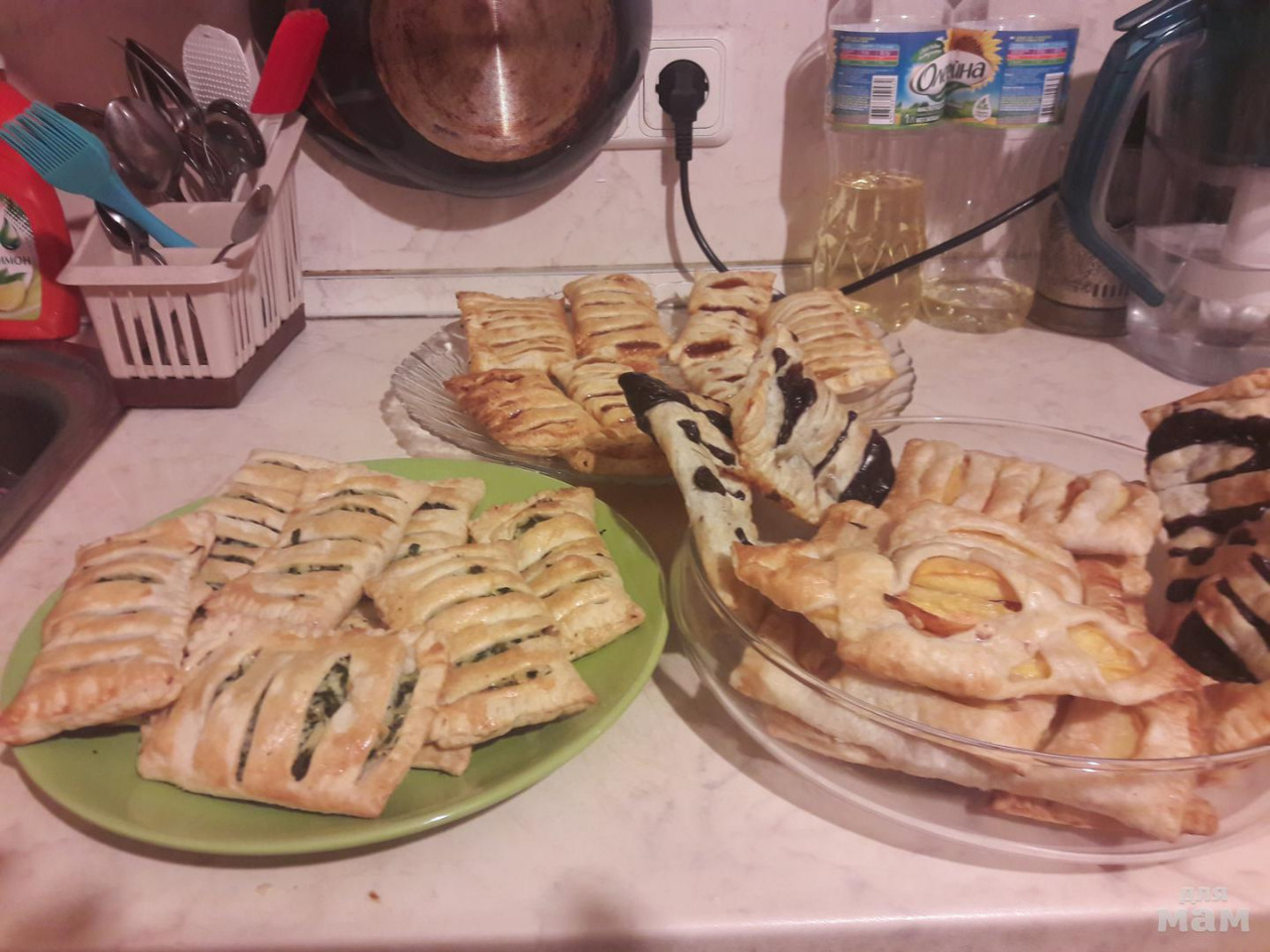 а потом еще было повидло яблочно-абрикосовое и просто абрикосовое, т.к. я разморозила 2 упаковки теста, т.е. 4 пласта....😲
