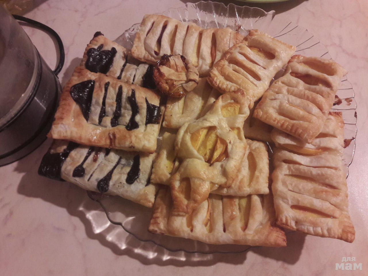 И тут у меня созрела мыслЯ, что надо попробовать сделать слойки с этими сырками)) я не была уверена в результате... аааще! Но рискнула и не пожалела, всему семейству понравилось) Косенькие-кривенькие, но очень вкусные!