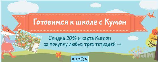 Акция МИФа - Готовимся к школе вместе с Кумон СсылкаС 17 по 20 августа 2018г все тетради Kumon для детей стоят на 20% дешевле. За заказ трех любых тетрадей дарим подарок — карту Kumon