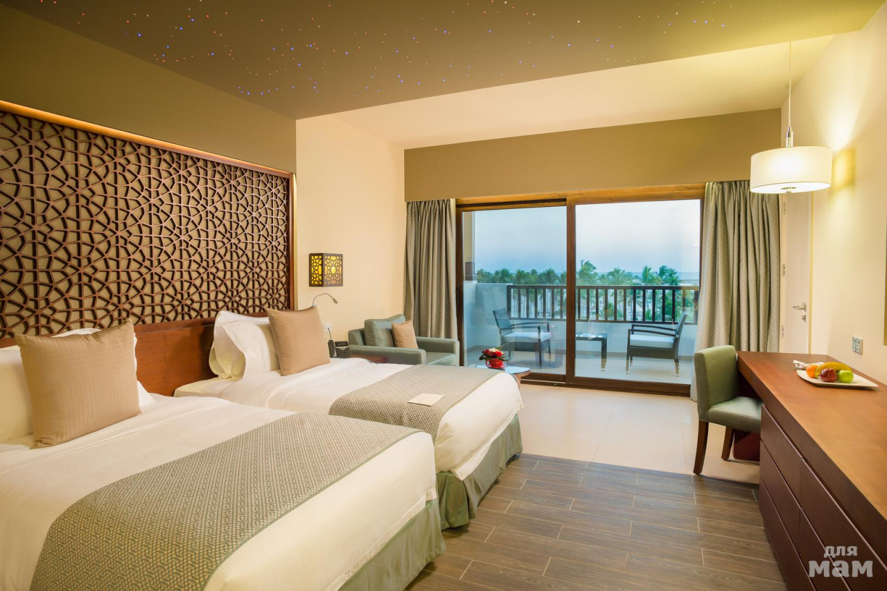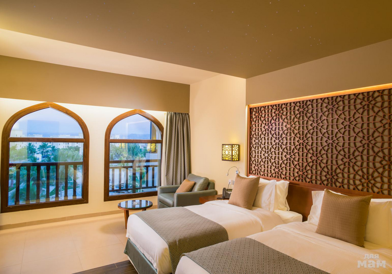 Архитектура отеля выдержана в оманском стиле. В блоках вокруг первоклассного центрального корпуса размещаются многочисленные общие удобства и зоны отдыха. С балкона/террасы всех номеров открывается вид на океан, канал или сад. В номерах имеются телевизор с плоским экраном, мини-бар, принадлежности для чая/кофе и другие удобства.