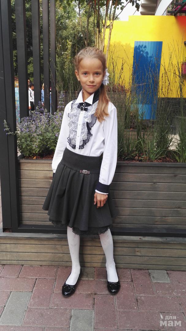 Оч хотели пойти в сарафане, но дочь определенно сказала, эта блузка лучшая, а сарафан ее закроет). Поэтому в юбке...