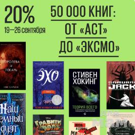 С 19 по 26 сентября — скидка 20% на почти 50 000 книг от «АСТ» до «Эксмо»!Скидка распространяется на книги, представленные в этом каталоге.