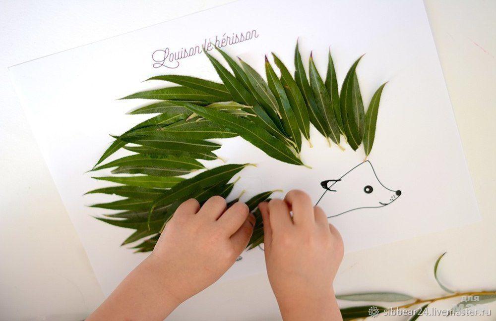 Или из зеленых листьев пример работы. Еж получается очень интересным!
