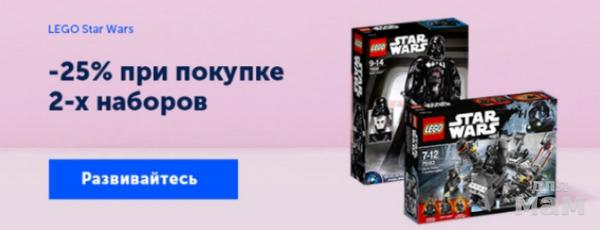 Скидка 25% при покупке 2-х наборов Lego Star Wars!
