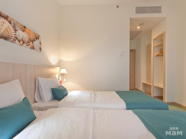 Площадь номера 20 кв.м., две отдельные стоящие односпальные кровати, функциональная мебель, индивидуальная система кондиционирования, холодильник, чайник, ЖК-телевизор со спутниковым телевидением, телефон, балкон с пластиковой мебелью, современная душевая кабина или ванна, электронный замок.