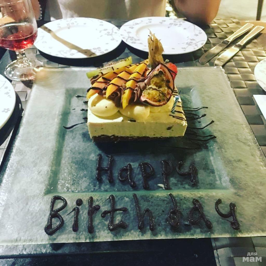 Во время отдыха у мужа был День Рождения, ему подарили торт и исполнили песню, было приятно.