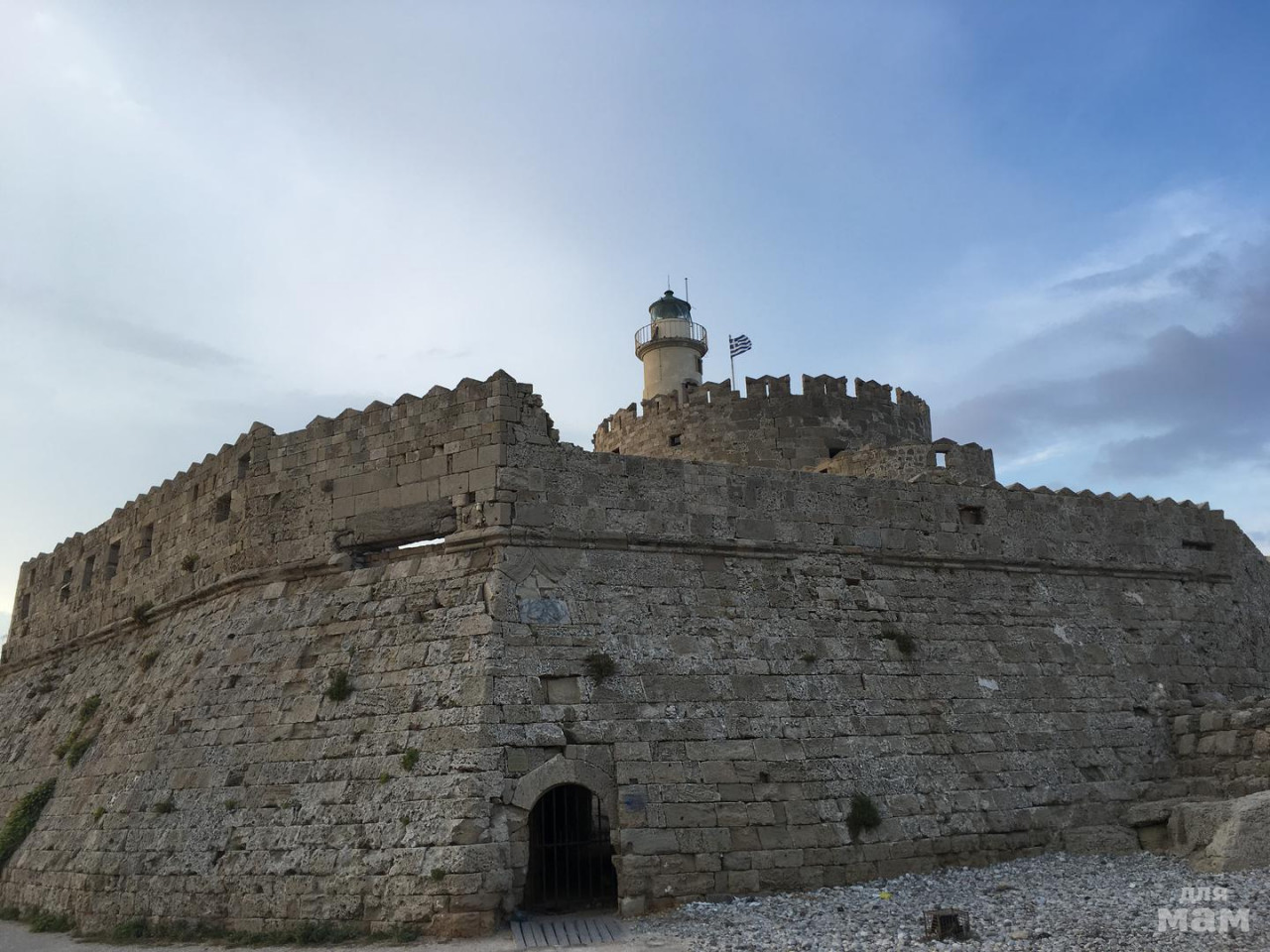 Узкие улочки, вымощенные камнем, величественные стены Родосской крепости влюбляют в себя с первого взгляда. Рядом Порт Мандраки и Форт Святого Николая.