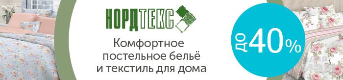 на выделенный ассортимент подушек, одеял, комплектов постельного белья, полотенец и прочего текстиля для дома торговой марки «Нордтекс» дарим скидки до 40%!