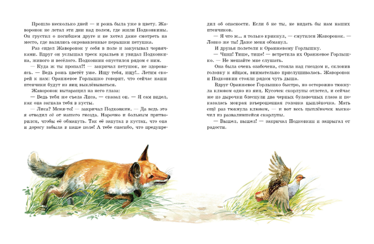 Но однажды в семье Бровкиных случается несчастье: на гнездо нападет ястреб. Родители, защищая своих птенцов, погибают в неравном бою. Тогда Оранжевое Горлышко принимает осиротевших малышей под своё крыло и начинает любить их как собственных детей. Теперь в их семье сорок четыре птенца. Удастся ли куропатке воспитать и вырастить такое количество детей? Ведь опасности поджидают их на каждом шагу.