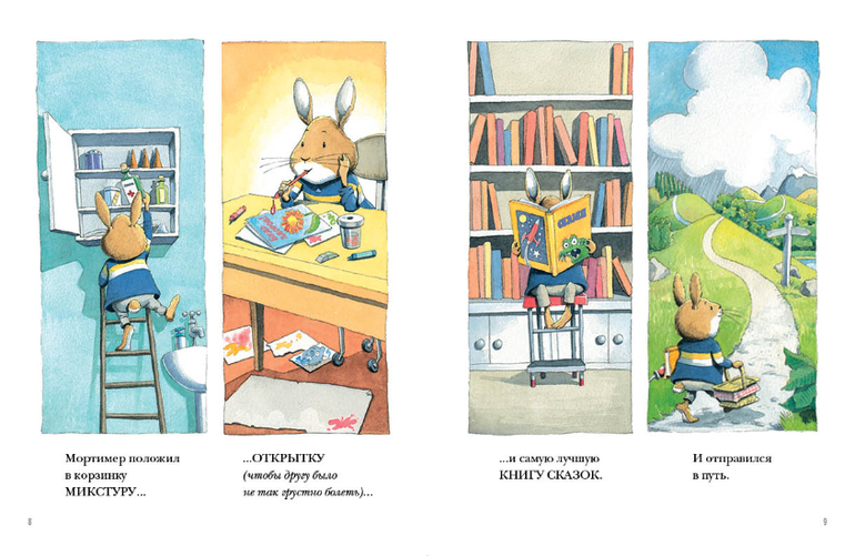 В дороге кролика подстерегало множество опасностей – и огромный голодный крокодил, и страшный серый волк, и волосатый горный тролль, – но храбрый Мортимер с честью выходил из любой сложной ситуации. Ведь ему во что бы то ни стало нужно было поскорее попасть домой к другу!