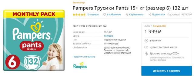 Акция Озон на памперсы. Их разбирают моментально, но время от времени они вновь появляются. Проверяйте периодически, или нажмите "Уведомить о поступлении"