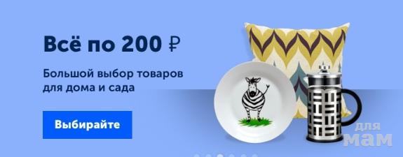 На Озоне по ссылке все товары из раздела "Для дома" продаются по фиксированной цене 200 рублей.Скидки до 70%
