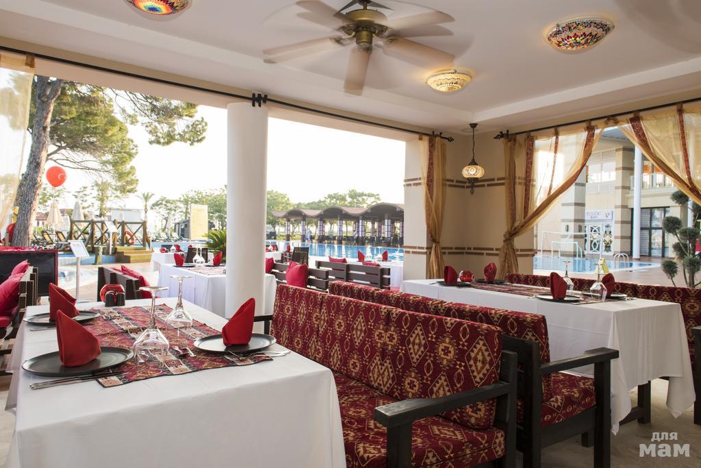 - 3 ресторана a la carte* (турецкий, итальянский; рыбный**; 18:30-21:30)