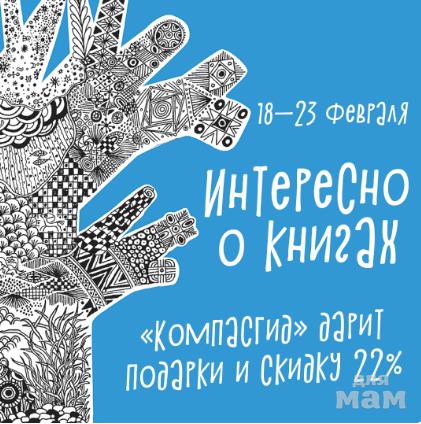 «КомпасГид» дарит скидку и интересные книгиНа книги издательства действует скидка 22%. А к заказу от 1500 рублей — в подарок книга о книгах!по 23.02.2019