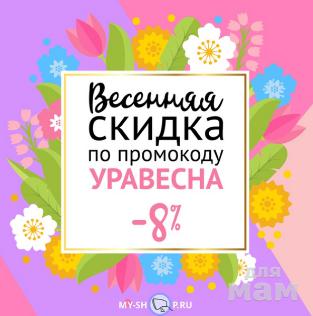 Вот и наступила долгожданная весна!Мы хотим подарить вам в этот день промокод УРАВЕСНА на скидку 8%!Промокод действителен до 4 марта включительно!Встречаем весну вместе!