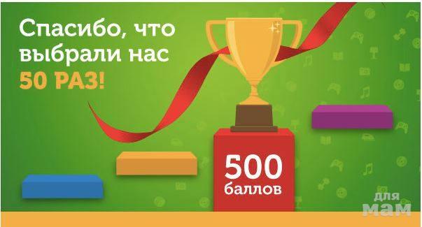 За 50-ый заказ инет-магазин может прислать на электронную почту письмо с индивидуальным промокодом на 500 баллов. Баллы будут действовать 7 дней.