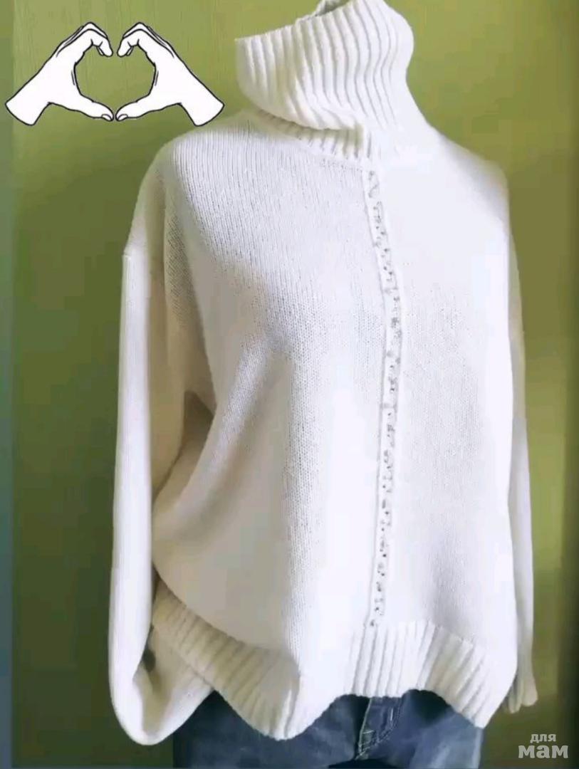 Оверсайз,кашемир+ меринос,декорирован стразами и бусинами