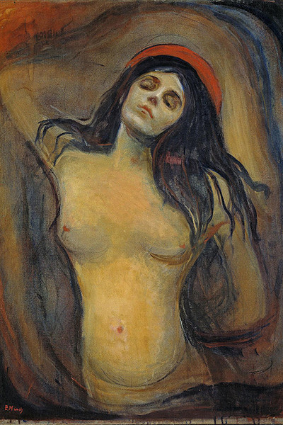 Художник, известный своим пессимистическим взглядом на жизнь, обожествил на полотне свою возлюбленную – писательницу Дагни Юль. Правда, в присущей ему манере сделал это в темных тонах, наделив изображение мрачностью и трагизмом. Как будто предсказал судьбу. Молодая девушка была замужем, но это обстоятельство не мешало ей крутить романы. Среди ее увлечений оказался Эдвард Мунк. Видимо, художник гораздо серьезнее относился к этим отношениям, Дагни можно увидеть на нескольких его работах: «Ревность», «Поцелуй», «Созревание». Ветреная барышня быстро переключилась на другую творческую личность – польского поэта, от рук которого она и погибла при неизвестных нам обстоятельствах.