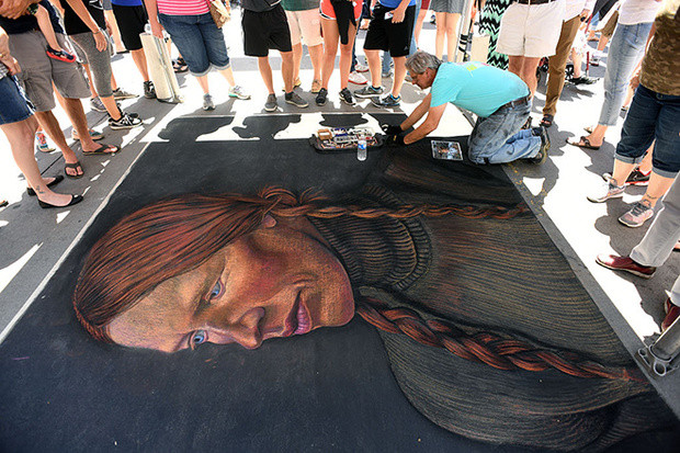Американского художника привлекла особенная внешность его соседки по дому. Как он потом вспоминал: «Я никак не мог выбросить из головы образ этого скуластого прусского лица с широко расставленными глазами в обрамлении белокурых волос». Эндрю Уайет предлагает женщине стать моделью для его картин. Так начался 15-летний творческий союз и любовный треугольник одновременно.