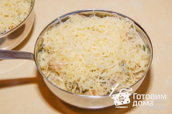 Сверху каждую порцию густо посыпать тертым сыром.