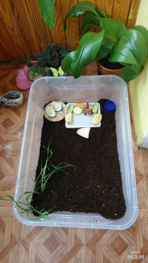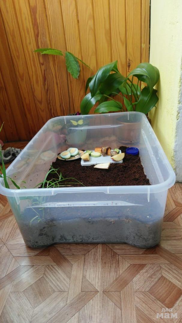 Наконец-то мы прикупили им новый дом. Большой пластмассовый контейнер в леруа. Вычитала что им важнее плоскость, чем высота.