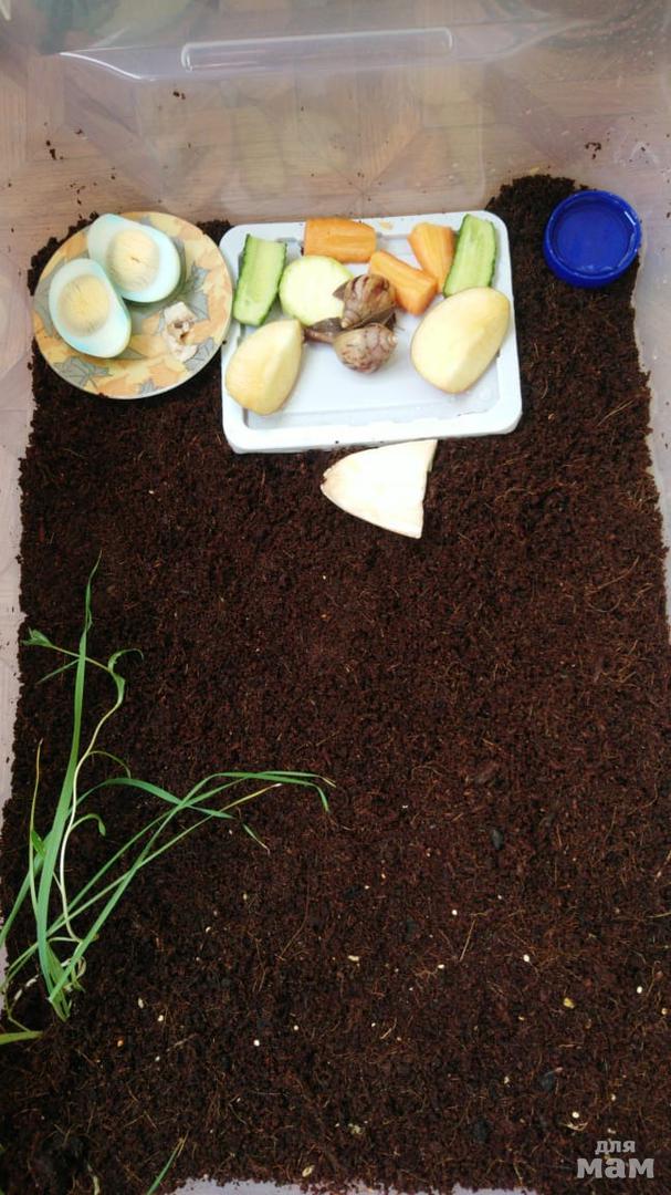 Вот такой, леруа, 700р. На дне специальный грунт из кокоса, продается в зоомире, 180р, в виде жесткого брикета, заливаешь водой и он превращается в легкую земельку. Днем и когда холодно они зарываются в нее. Также посеяли в грунт корм для попугая, он отлично в ней растет!