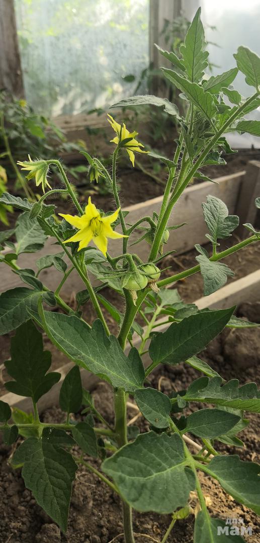 Ну а вот и сюрприз был, когда я приехала. В теплице томаты уже с завязью, не везде, но все же. Высаживала их 3.05 в теплицу.