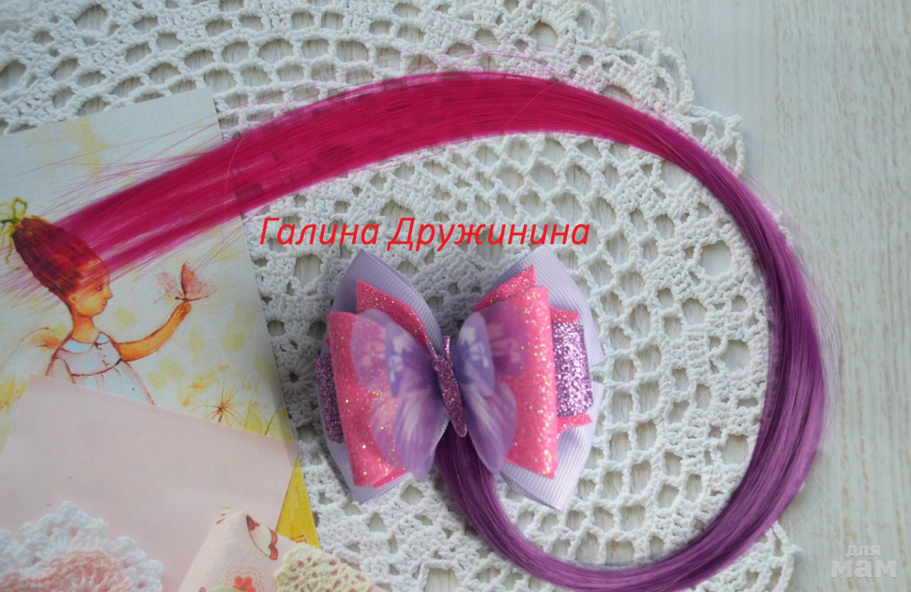 Напишу сразу!!! Все прядки отстегиваются и бантики на зажимах для удобства. (Надевается резиночка в нужном месте на волосах и вставляется зажимчик) все удобно и не дает возможности путаться прядям!!! Размер 8см.