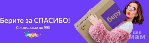 При регистрации нового аккаунта дают купон на скидку 500р при покупке от 2500р Beru5 -доп. скидка 5%Бонусами Спасибо можно оплатить 99% стоимости заказа