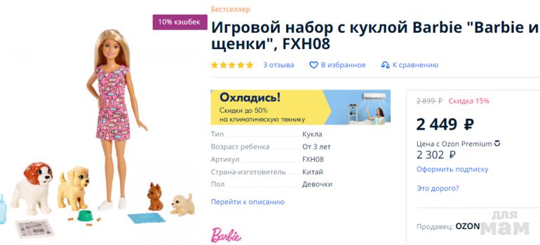 BARBIE30 - скидка 30% на игровой набор "Barbie и щенки"